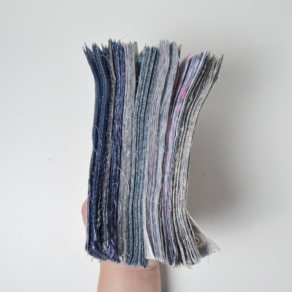 Gray + Blue Floral Print 3" x 7" Rectangles Cut Quilting Fabric Bundle