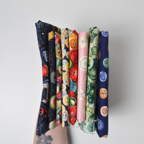 Button + Notion Print Quilting Weight Woven Fabric Bundle