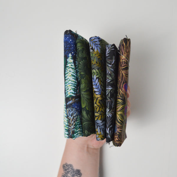 Dark Green + Purple Nature Print Quilting Weight Woven Fabric Bundle