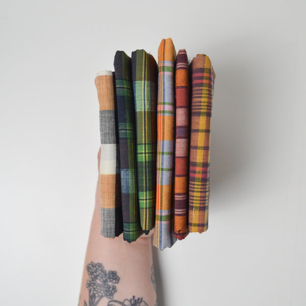 Navy Blue + Yellow Plaid Woven Fabric Bundle