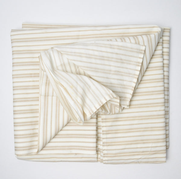 Beige + White Striped Woven Sheeting Fabric - 45" x 196"