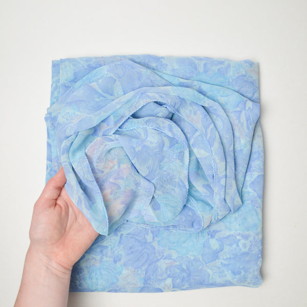 Light Blue + Light Purple Floral Print Sheer Drapey Woven Fabric - 41" x 210"