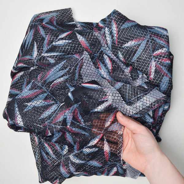 Black, Blue + Red Leaf Print Mesh Netting Fabric - 66" x 416"