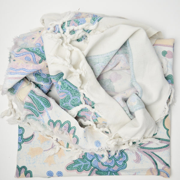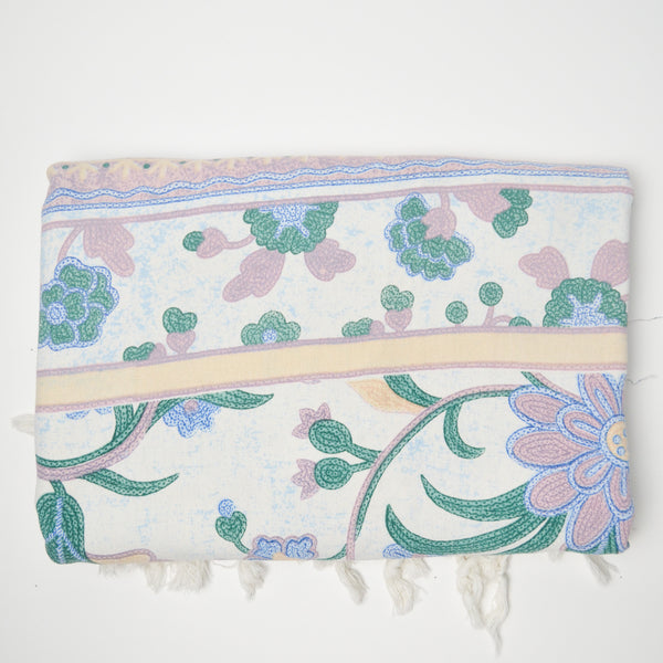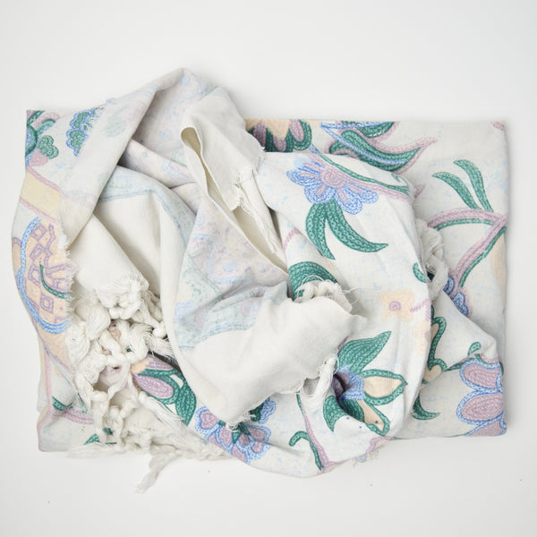 White + Pastel Floral Print Soft Woven Fabric with Fringe - 50" x 88"