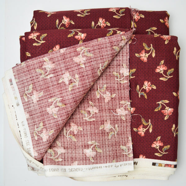 Maroon + Pink Floral Print Woven Upholstery Fabric - 50" x 248"