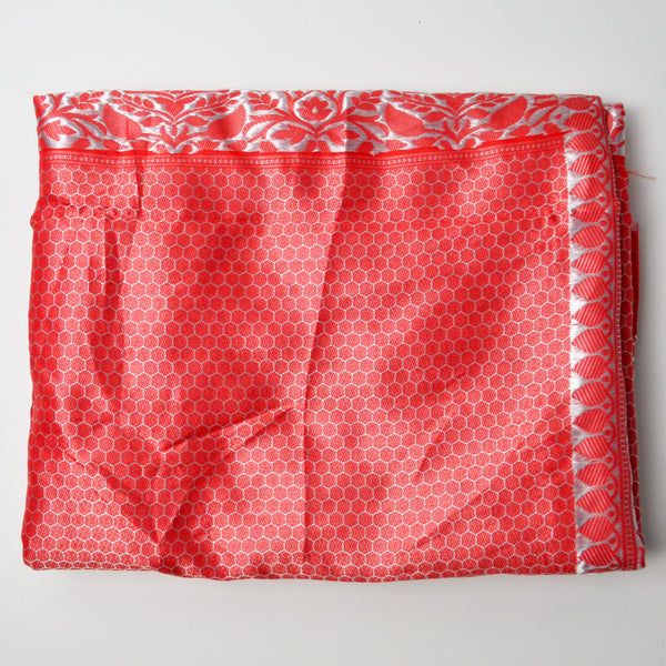 Red + Silver Silky Jacquard Border Woven Fabric - 46" x 228"