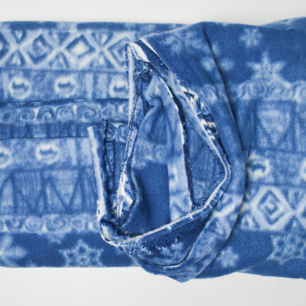 Blue + White Snowflake Print Fleece Fabric - 64" x 66"