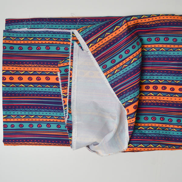 Purple, Teal + Orange Geometric Stripe Print Polyester Canvas Woven Fabric - 60" x 72"