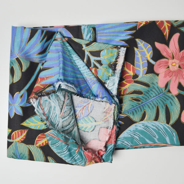 Black + Colorful Large Tropical Print Stain Resistant-Coated Woven Fabric - 38" x 60"