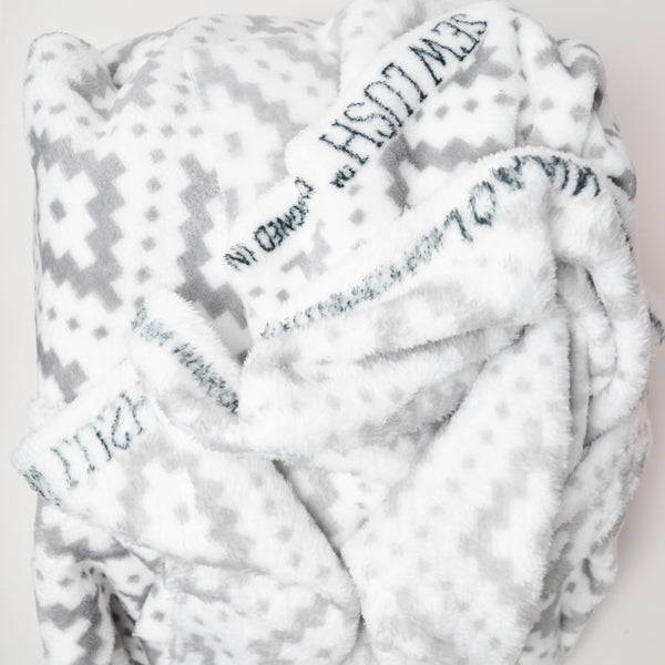 White + Gray Geometric Print Fleece Fabric - 66" x 106"