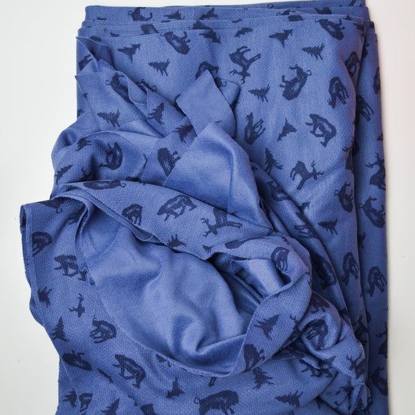 Blue Woodland Print Mesh Knit Fabric - 66" x 204"