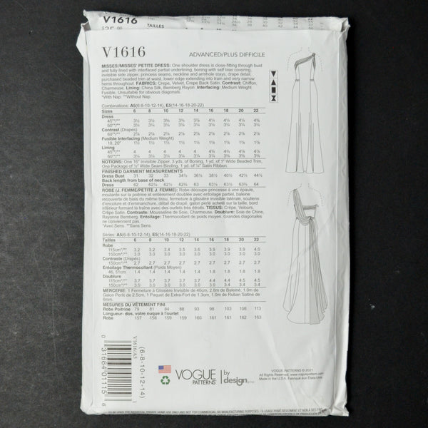 Vogue V1616 Misses'/Misses' Petite Dress Sewing Pattern - Size A5 (6-14)