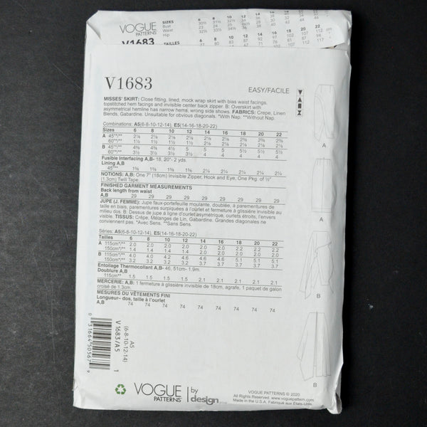 Vogue V1683 Misses' Skirt Sewing Pattern - Size A5 (6-14)