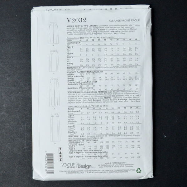 Vogue 2032 Misses' Skirt in Two Lengths - Size B5 (8-16)