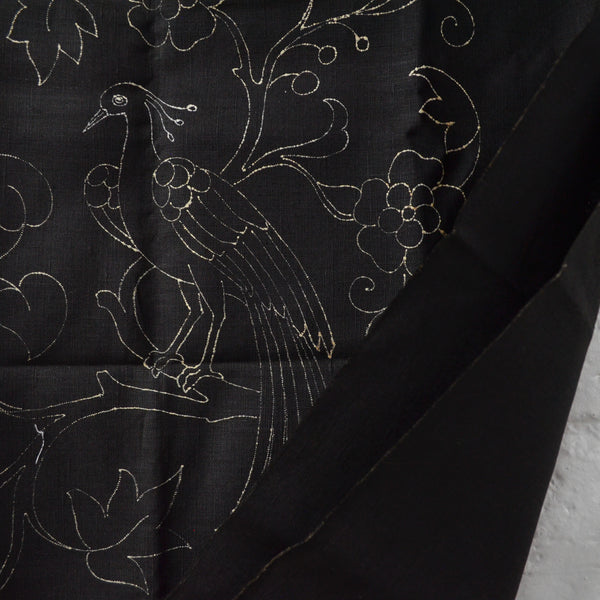 One flat piece of rectangular fabric, with the front stamped with the bird stencil for embroidery