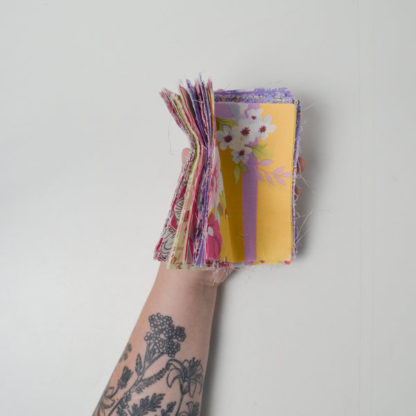 Pink, White + Purple Floral Print Cut Quilting Weight Fabric Bundle - 5.5" Squares