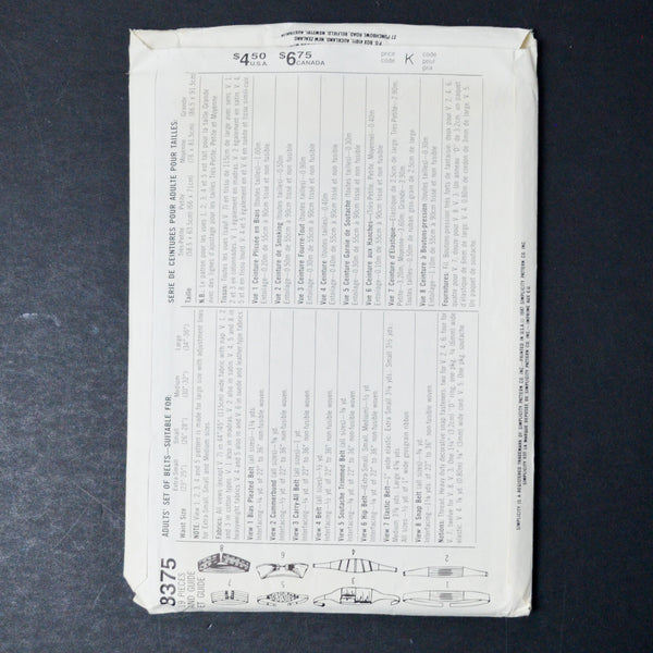 Simplicity 8375 Adults' Set of Belts Sewing Pattern - One Size