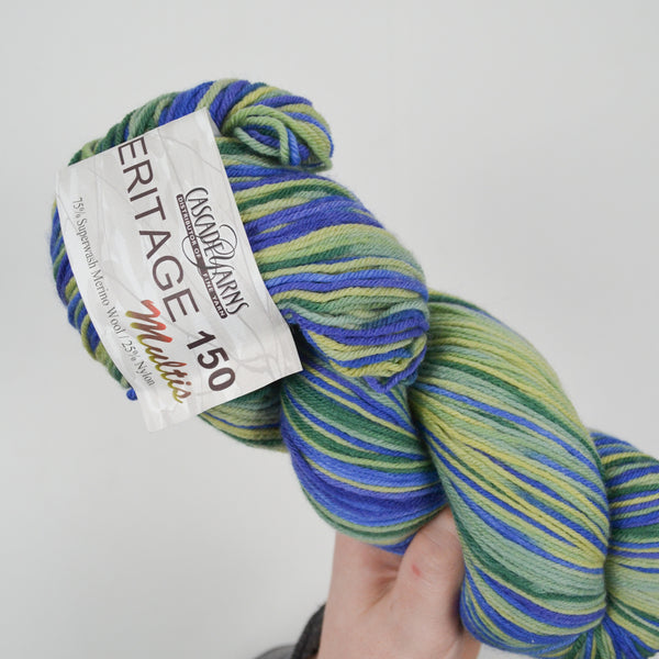 Blue + Green Cascade Yarns Heritage 150 Multis Merino Wool + Nylon Yarn - 5 Skeins