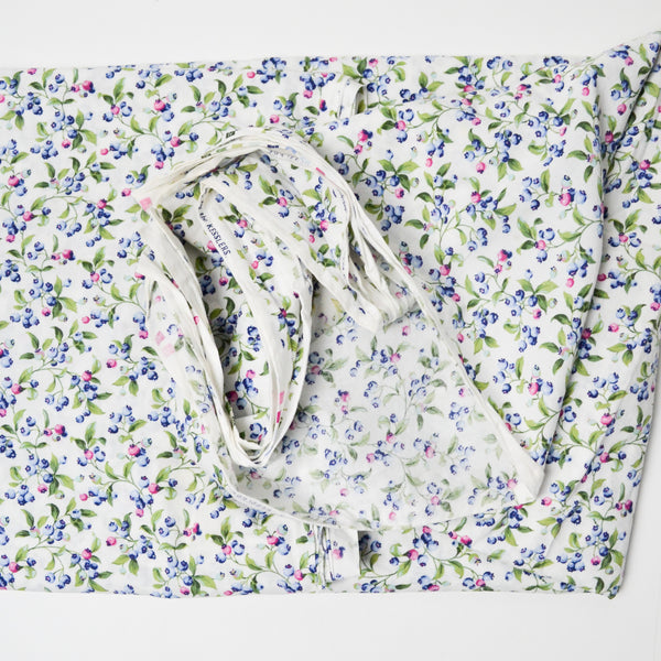 White + Blue Blueberry Print Quilting Weight Woven Fabric - 43" x 106"